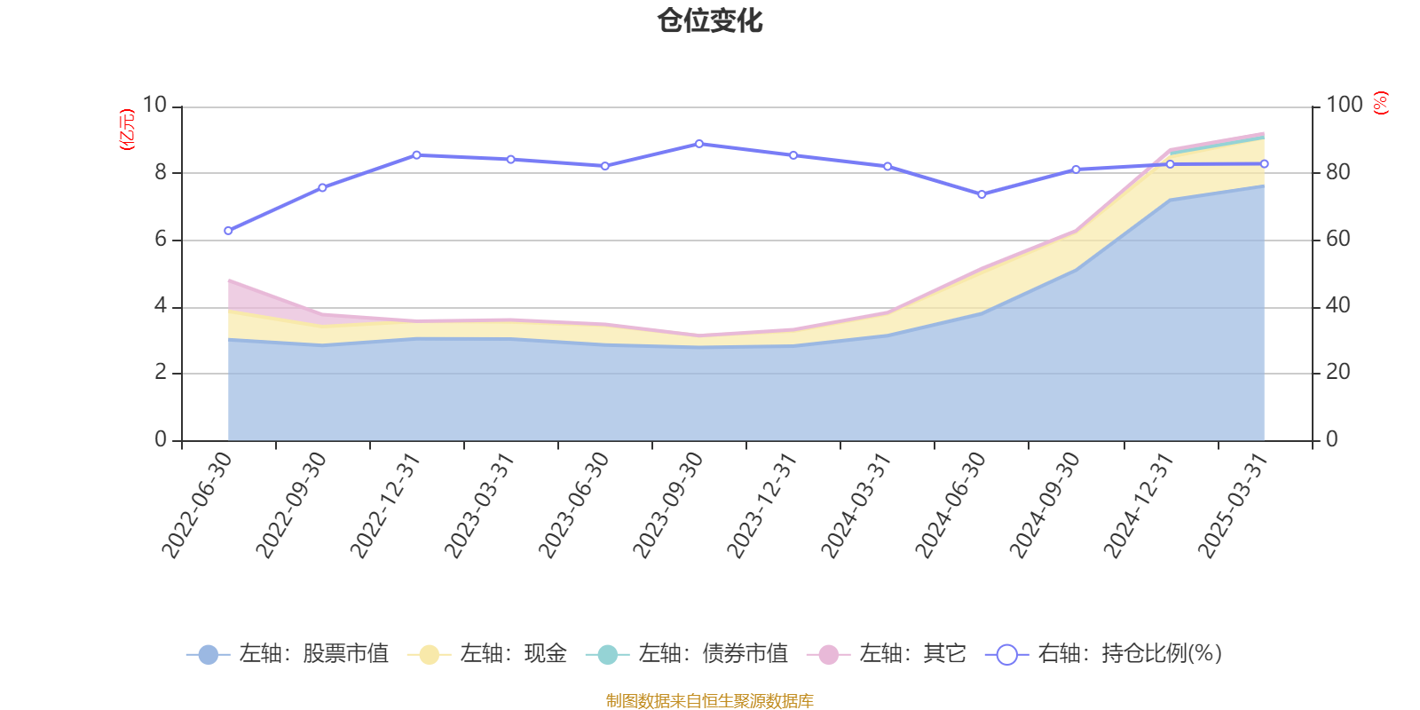 据定期报告数据统计,近三年平均股票仓位为80.6%,同类平均为85.21%。2023年三季度末基金达到88.86%的最高仓位,2022年上半年末最低,为62.84%。