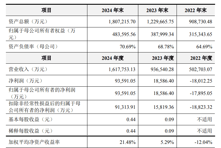 招股书(上会稿)显示,联合动力主要客户包括理想汽车、广汽集团、奇瑞汽车、小米汽车、吉利集团等。2022年至2024年,联合动力实现营收50.27亿元、93.65亿元和161.78亿元,实现归母净利润-1.79亿元、1.86亿元、9.36亿元。