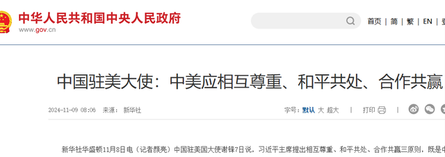 刘建超还特意提到了中美交往的三大原则:相互尊重、和平共处、合作共赢。特别是对"相互尊重"的解释,他强调这"不是一般意义上的尊重",而是对制度、发展道路、主权的全方位尊重。