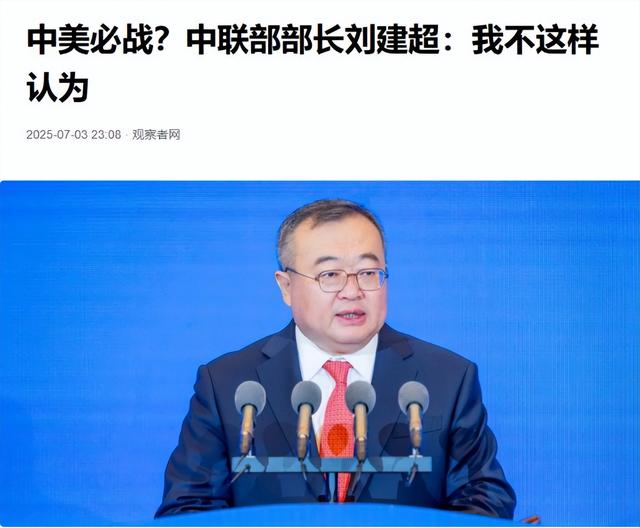 说到官方表态,刘建超的话挺有意思。7月3日,清华园里的世界和平论坛上,这位中共中央对外联络部部长站在讲台上,面对来自全球的政要和媒体,说出了那句让人印象深刻的话:"我不认为中美必有一战。"