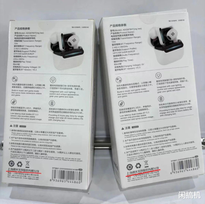 它叫做晨光电竞无线蓝牙耳机,看到“晨光”的时刻我愣了一下,这不是卖文具的么?怎么它也来蹚浑水了?于是找到卖家拍的图,看到包装盒是“上海晨光稳居股份有限公司”出品,还真是那家晨光。