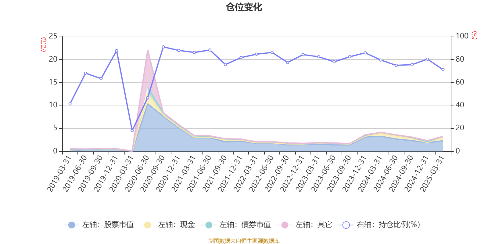 据定期报告数据统计,近三年平均股票仓位为79.89%,同类平均为80.16%。2020年三季度末基金达到91.03%的最高仓位,2020年一季度末最低,为18.12%。