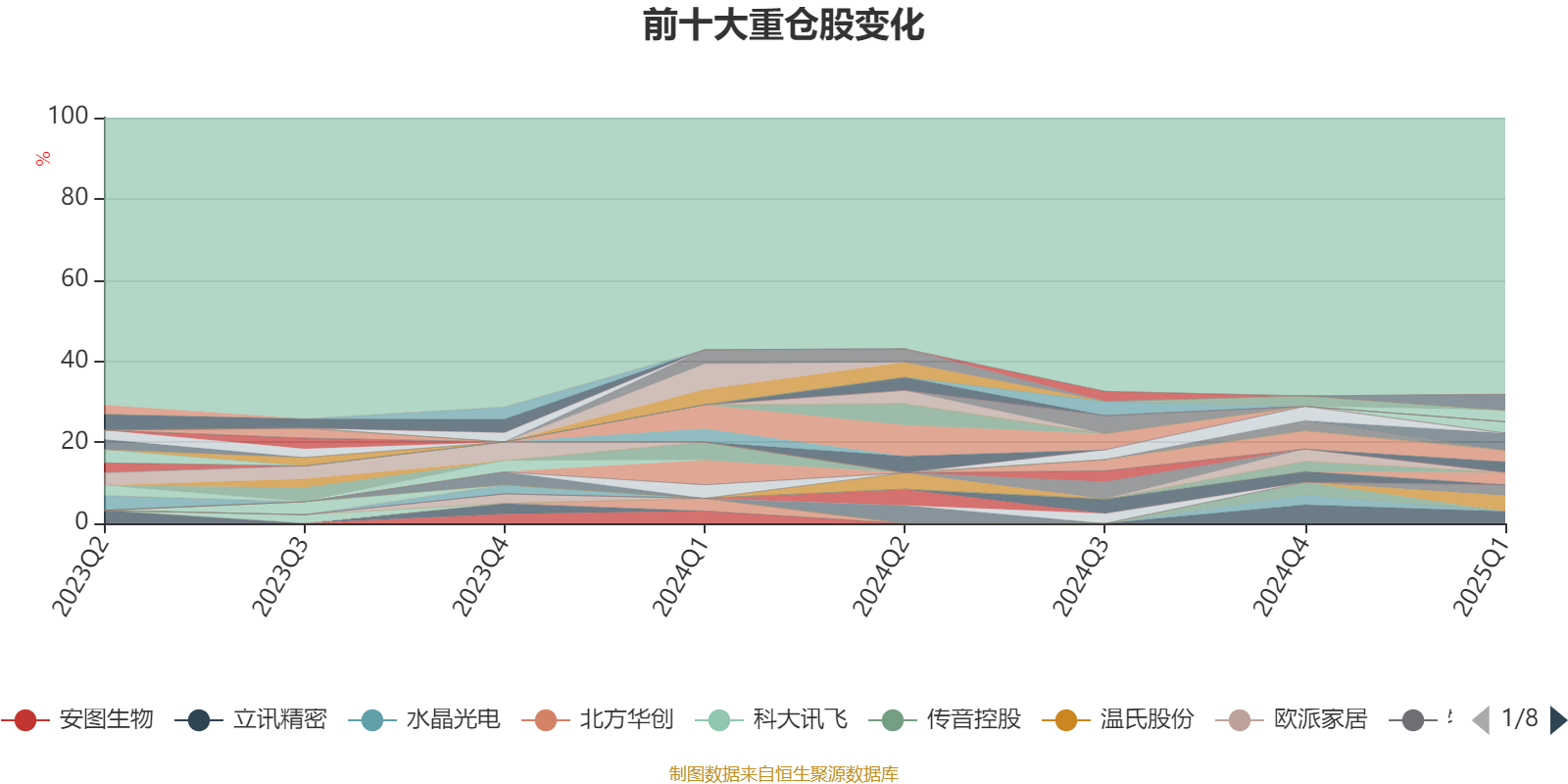 截至2025年一季度末,基金十大重仓股分别是广联达、中国国航、温氏股份、博创科技、立讯精密、宁德时代、三一重工、圣邦股份、牧原股份、亿纬锂能。