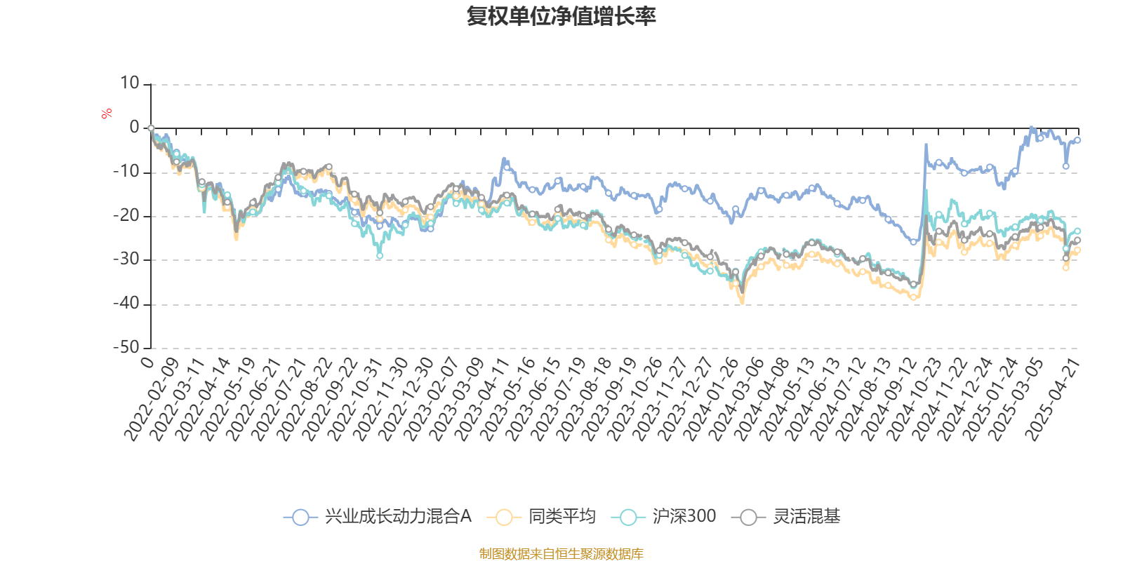 截至4月21日,兴业成长动力混合A近三个月复权单位净值增长率为7.58%,位于同类可比基金48/918;近半年复权单位净值增长率为5.64%,位于同类可比基金122/918;近一年复权单位净值增长率为14.19%,位于同类可比基金207/918;近三年复权单位净值增长率为19.60%,位于同类可比基金61/901。